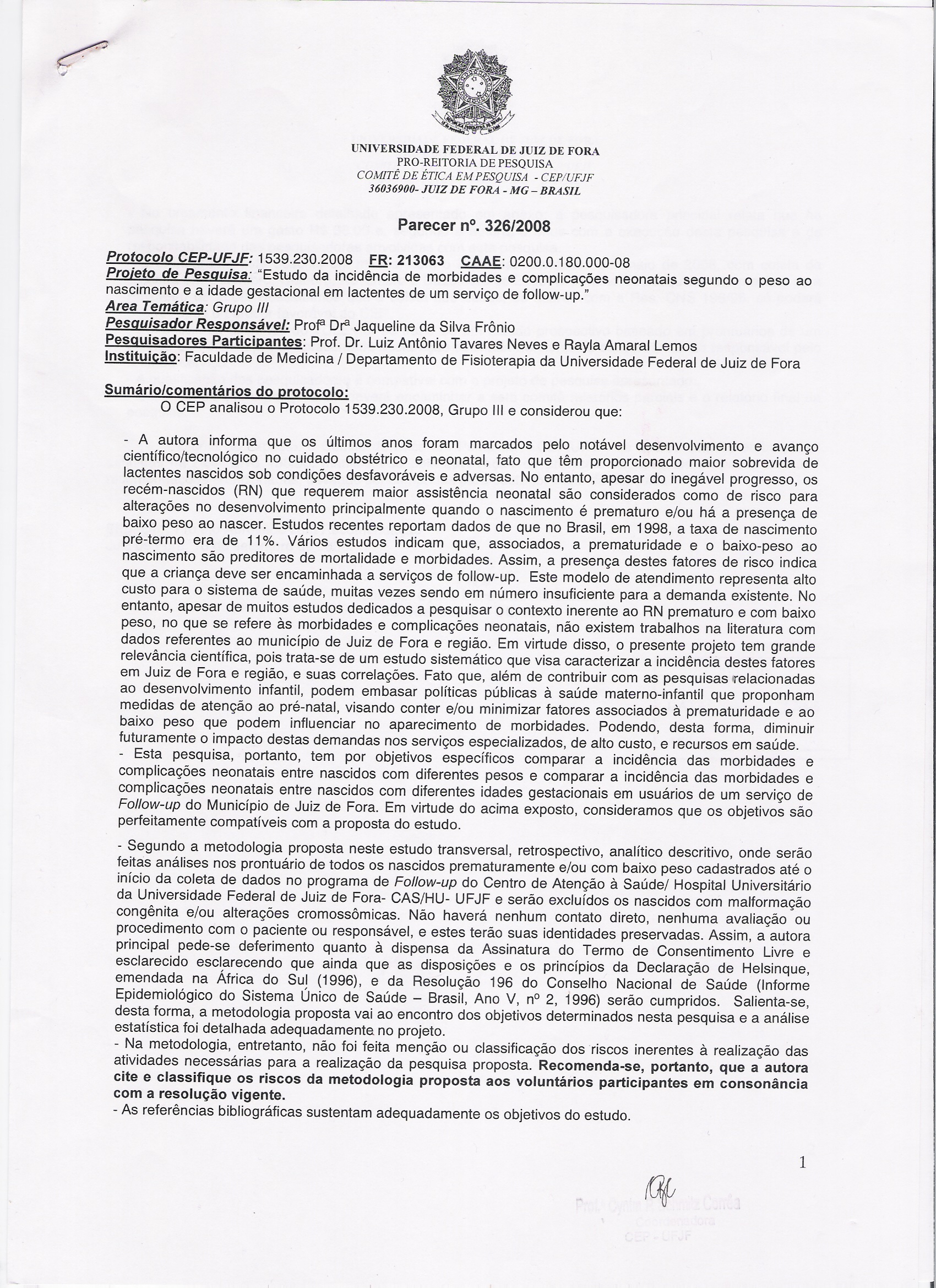 ESTUDO DA PREVALÊNCIA DE MORBIDADES E COMPLICAÇÕES NEONATAIS SEGUNDO O PESO AO NASCIMENTO E A IDADE GESTACIONAL EM LACTENTES DE UM SERVIÇO DE FOLLOW-UP.