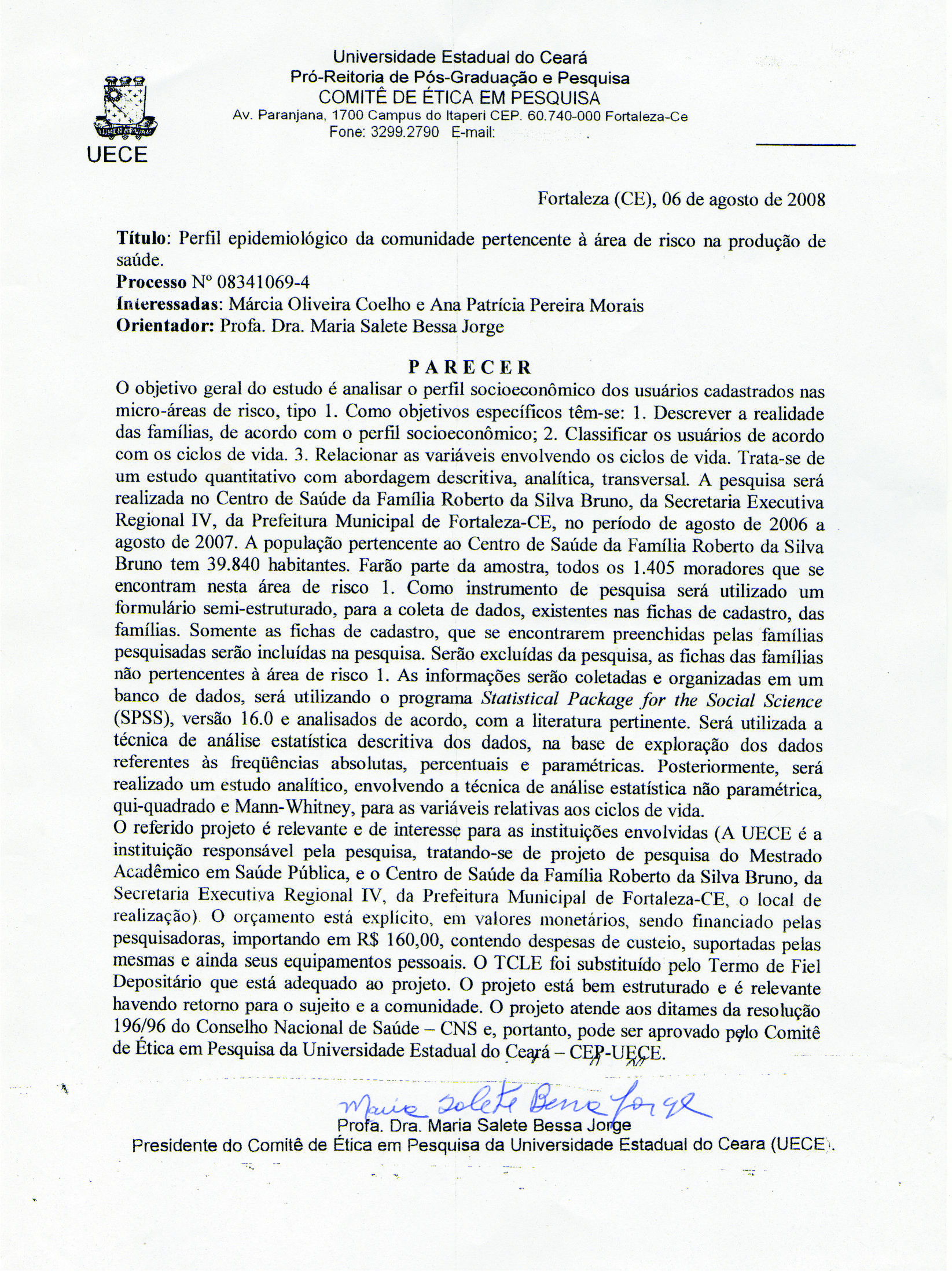 PERFIL EPIDEMIOLOGICO DA COMUNIDADE PERTENCENTE À ÁREA DE RISCO NA CIDADE DE FORTALEZA-CE