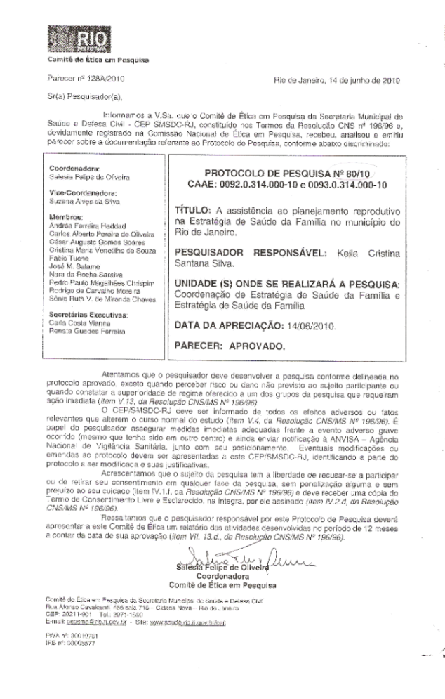 Planejamento familiar, Programa Saúde da Família, MulheresResumo