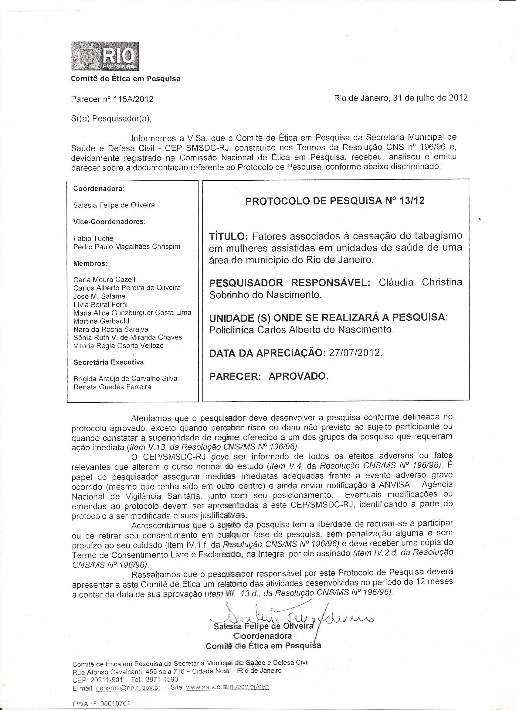 FATORES ASSOCIADOS À RECAÍDA DO TABAGISMO EM PACIENTES ASSISTIDOS EM UNIDADES DE SAÚDE DA ZONA OESTE DO MUNICÍPIO DO RIO DE JANEIRO