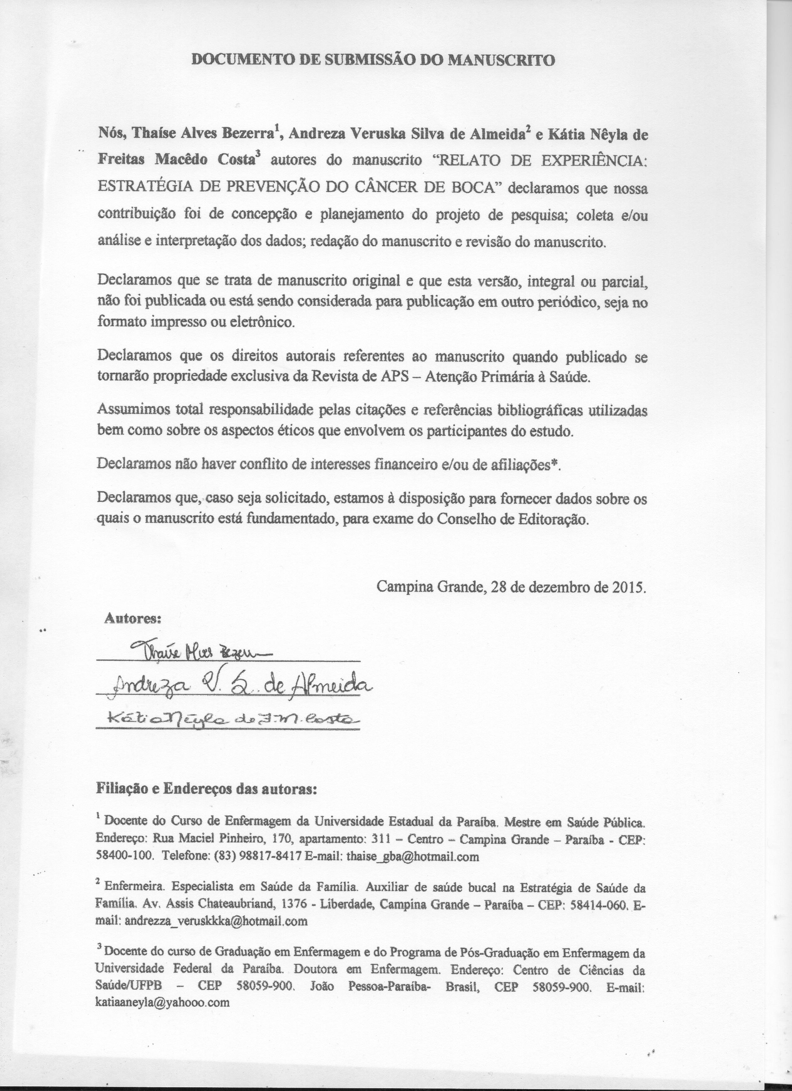 Atenção Básica, Câncer Bucal, Diagnóstico Precoce.Resumo