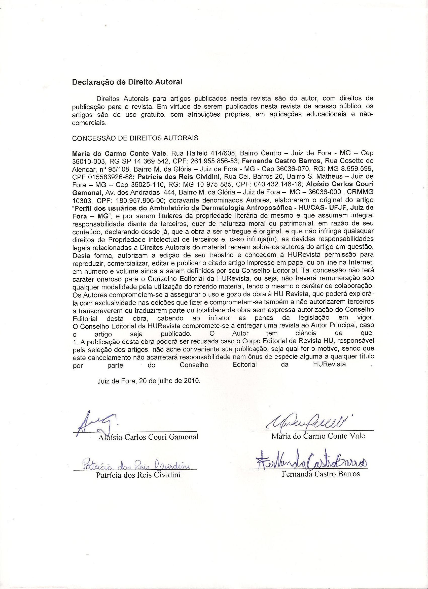 Perfil dos usuários do Ambulatório de Dermatologia Antroposó-fica - HU/CAS- UFJF, Juiz de Fora - MG