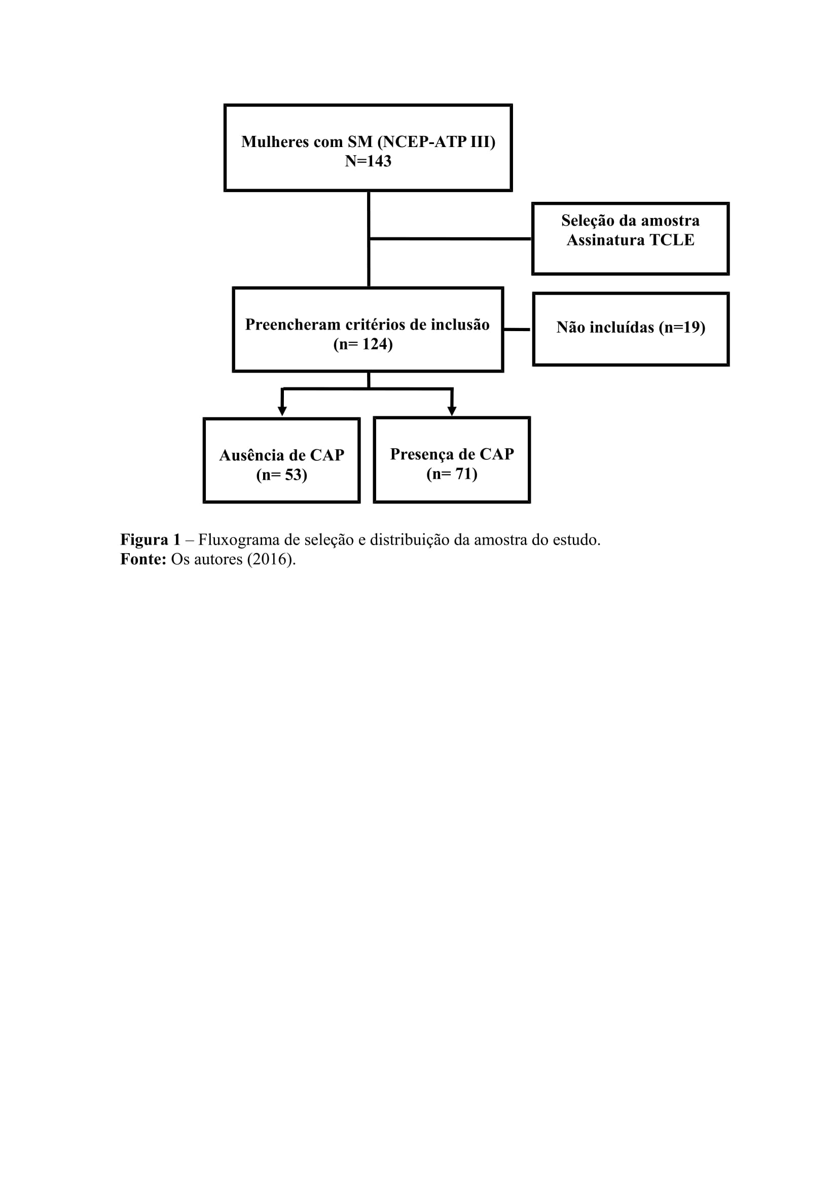 A obesidade, um dos principais componentes da síndrome metabólica frequentemente associa-se à compulsão alimentar periódica (CAP). O objetivo do presente estudo foi avaliar a presença da CAP em mulheres com SM e a possível associação com parâmetros sociodemográficos, clínicos e comportamentais. Em estudo transversal foram selecionados 124 indivíduos com SM, distribuídos em dois grupos: Grupo 1 (ausência de CAP) e Grupo 2 (presença de CAP). A avaliação clínica incluiu medidas de peso e altura, circunferência da cintura e pressão arterial de consultório. Foram também avaliados parâmetros comportamentais, como presença de compulsão alimentar periódica, nível de atividade física, consumo de álcool, imagem corporal, sintomas depressivos e qualidade de vida. A avaliação laboratorial incluiu as dosagens de glicose e insulina, hormônio tiroestimulante, perfil lipídico e taxa de filtração glomerular estimada. Aplicou-se análise estatística através dos testes Qui Quadrado e t de Student. A média de idade das participantes foi 41±10,9 anos e a totalidade da amostra apresentava obesidade abdominal, com média da circunferência da cintura de 110±11,0 cm, 70% eram hipertensas, com média de Pressão Arterial Sistólica de 133±13,0 mmHg e Pressão Arterial Diastólica de 89±11,0 mmHg. Além disso, 95% eram sedentárias, 7% eram fumantes, 12% faziam uso nocivo do álcool, 98% declararam insatisfação com a imagem corporal e 62% apresentavam depressão. Observou-se presença de CAP em 57% das mulheres avaliadas. Houve associação entre CAP e idade, com predomínio na faixa etária entre 20 a 39 anos (p=0,010) e entre CAP e qualidade de vida (p=0,039). Quanto aos parâmetros laboratoriais, não foi observada diferença significativa entre os grupos. Em conclusão, a presença de CAP foi achado frequente em indivíduos com SM, sendo observada associação da CAP com faixa etária mais jovem e com pior qualidade de vida.