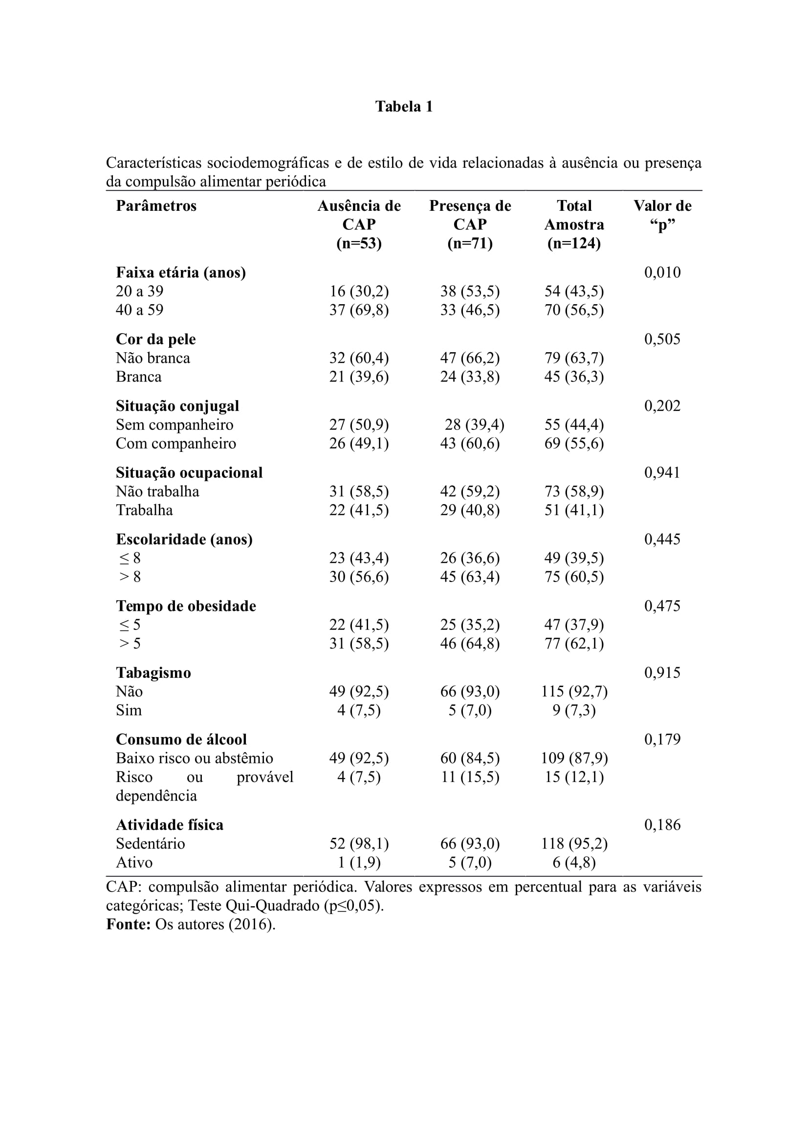 Palavras-chave: Obesidade; Síndrome metabólica; Transtorno da compulsão alimentar.