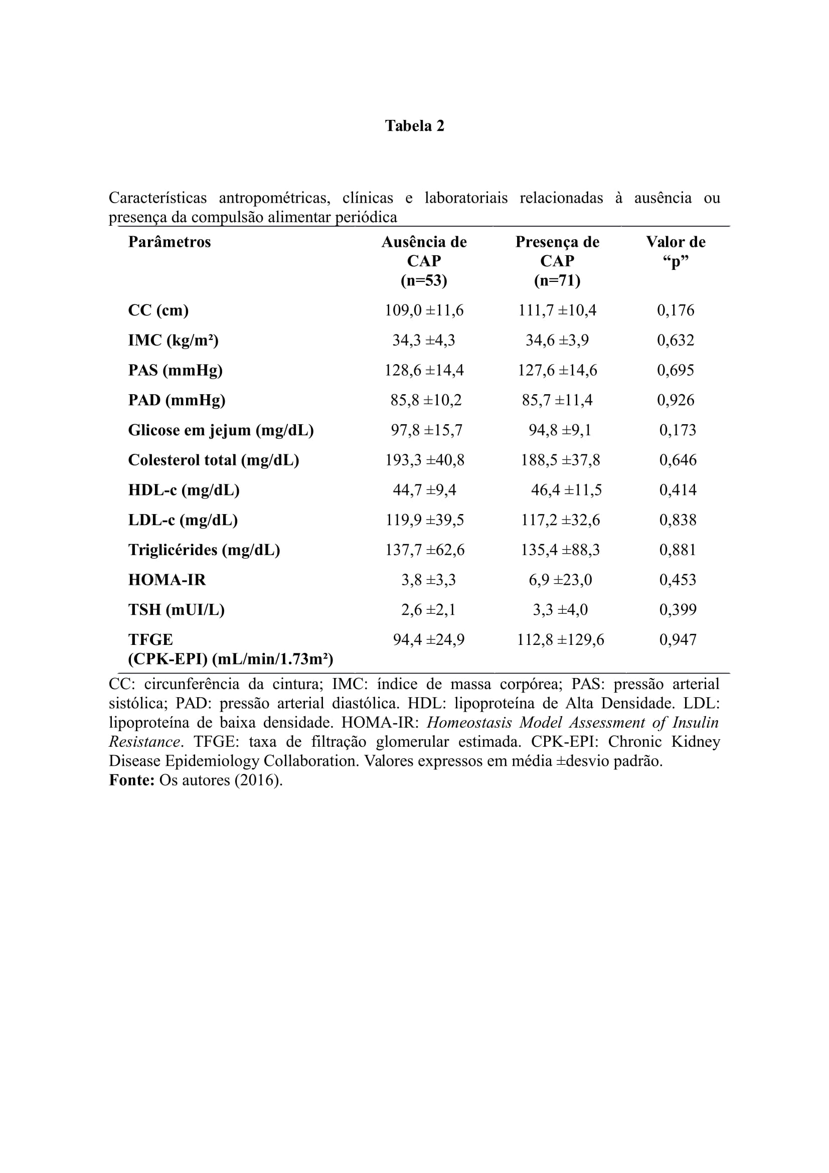ABRAHAM, T. M. et al. Metabolic characterization of adults with binge eating in the general population: the Framingham Heart Study. Obesity, Malden, v. 22, n. 11, p. 2441-2449, Nov. 2014.
