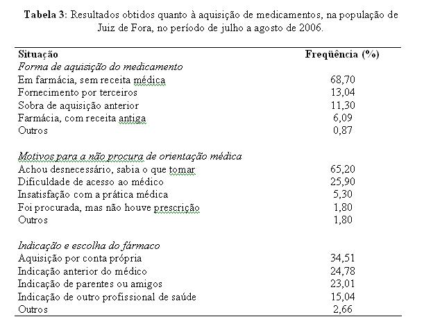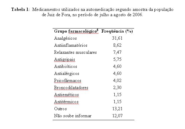 Comportamento de uma amostra da população urbana de Juiz de Fora – MG perante a automedicação