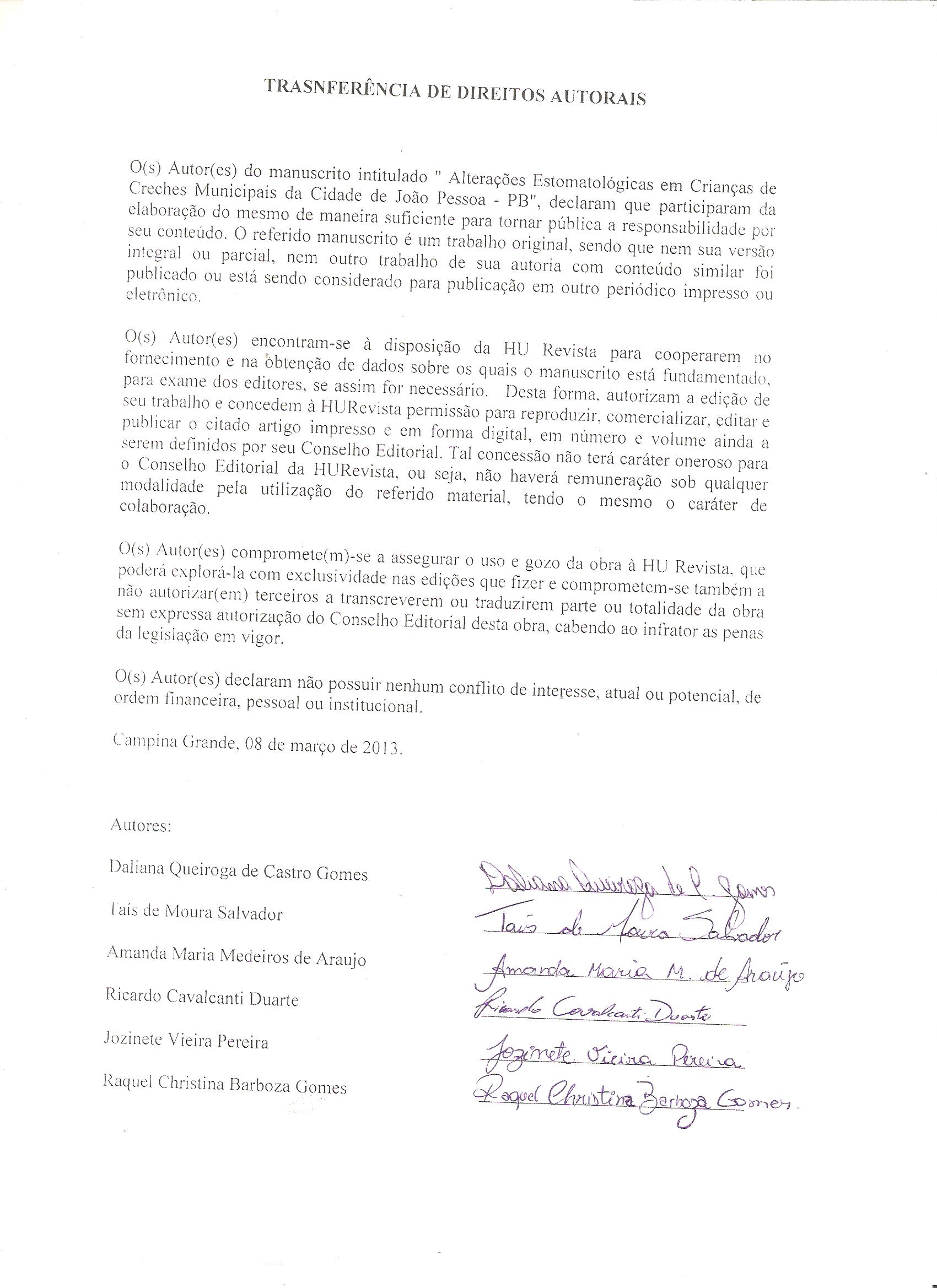 Alterações Estomatológicas em Crianças de Creches Municipais da Cidade de João Pessoa - PB