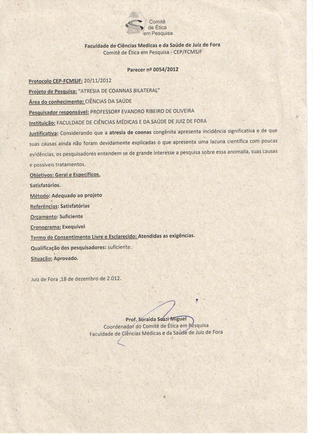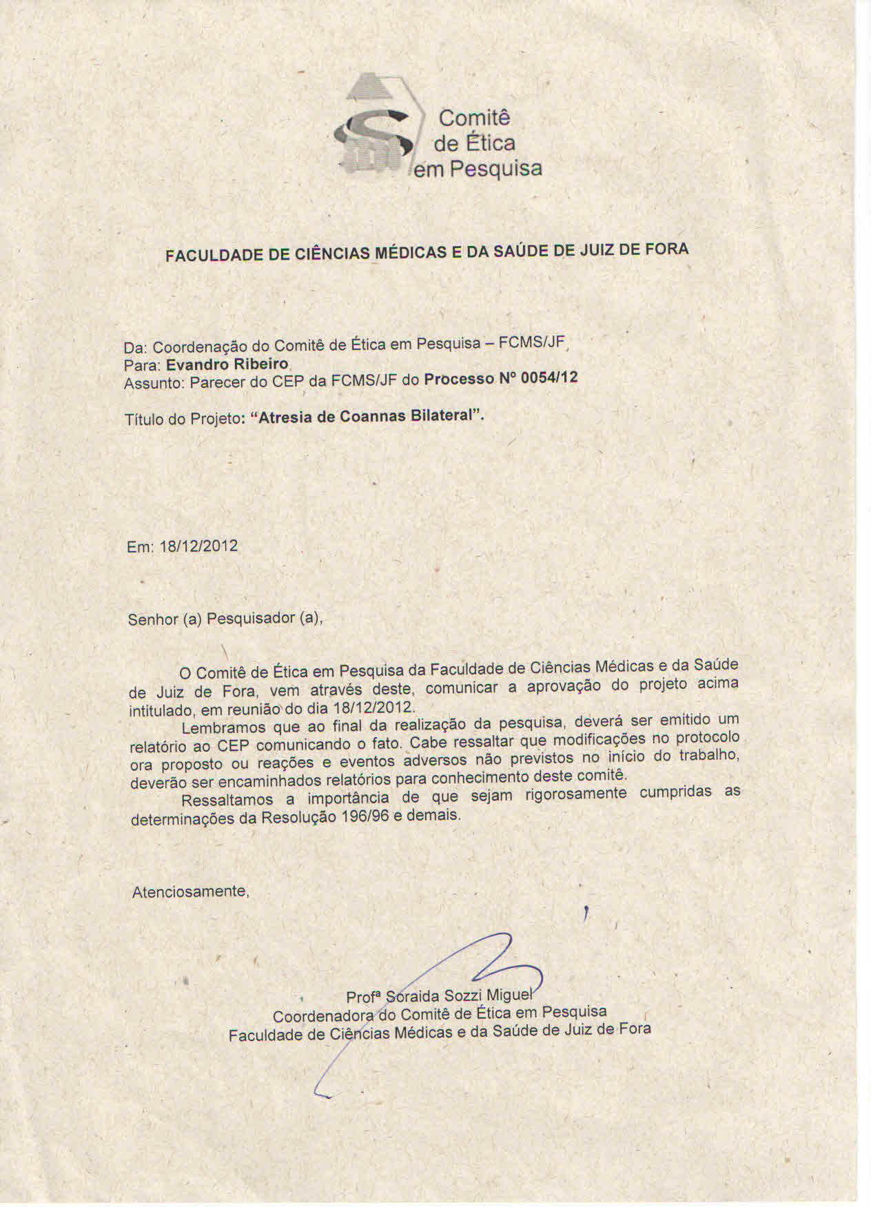 Os autores relatam o caso de um Recém Nascido Pré Termo de 36 semanas, parto cesária, nascido no dia 09-09-2011, em Juiz de Fora - Minas Gerais, peso de nascimento: 1.480 gramas, estatura 43 centímetros, P.C.: 30.5 centímetros, sexo: masculino, Apgar 1° minuto: 2 e do 5° minuto: 8, evoluindo com desconforto respiratório e necessitando de ambu e máscara em sala de parto, em seguida foi levado para o Centro de Terapia Intensiva, sendo entubado e permanecendo em ventilação mecânica. Foi pedido parecer para otorrinolaringologia e realizou-se a Tomografia Computadorizada, onde apresentou sinais compatíveis com Atresia de Coanas Bilateral.