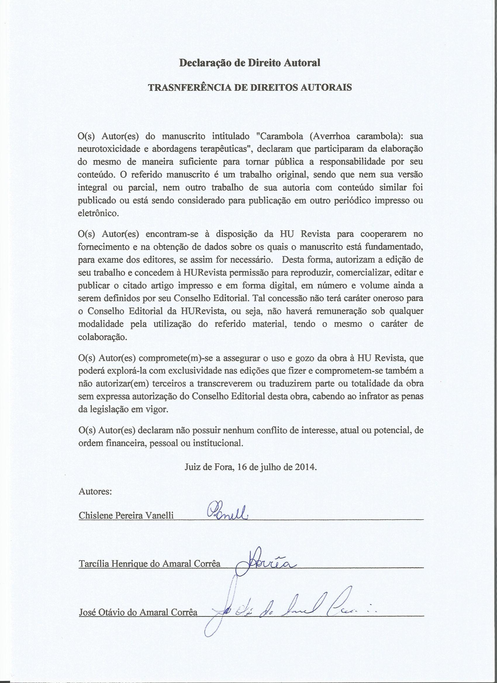 Os autores mantém todos os direitos autorais sobre a publicação, sem restrições, e concedem à HU Revista o direito de primeira publicação, com o trabalho licenciado sob a Licença Creative Commons Attribution que permite o compartilhamento irrestrito do trabalho, com reconhecimento da autoria e crédito pela citação de publicação inicial nesta revista, referenciando inclusive seu DOI.