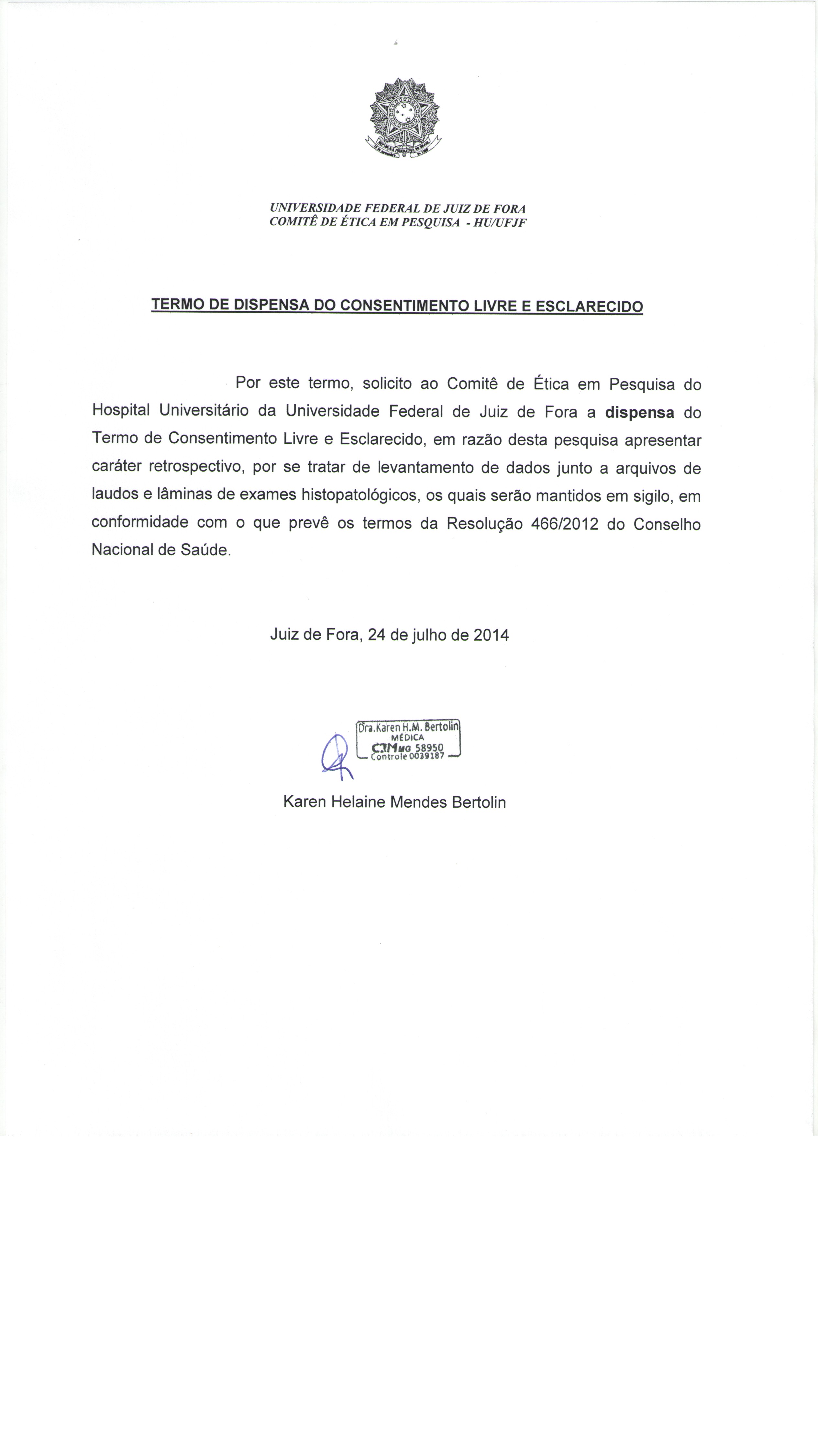 • Karen Helaine Mendes Bertolin HOSPITAL UNIVERSITÁRIO DA UNIVERSIDADE FEDERAL DE JUIZ DE FORA
