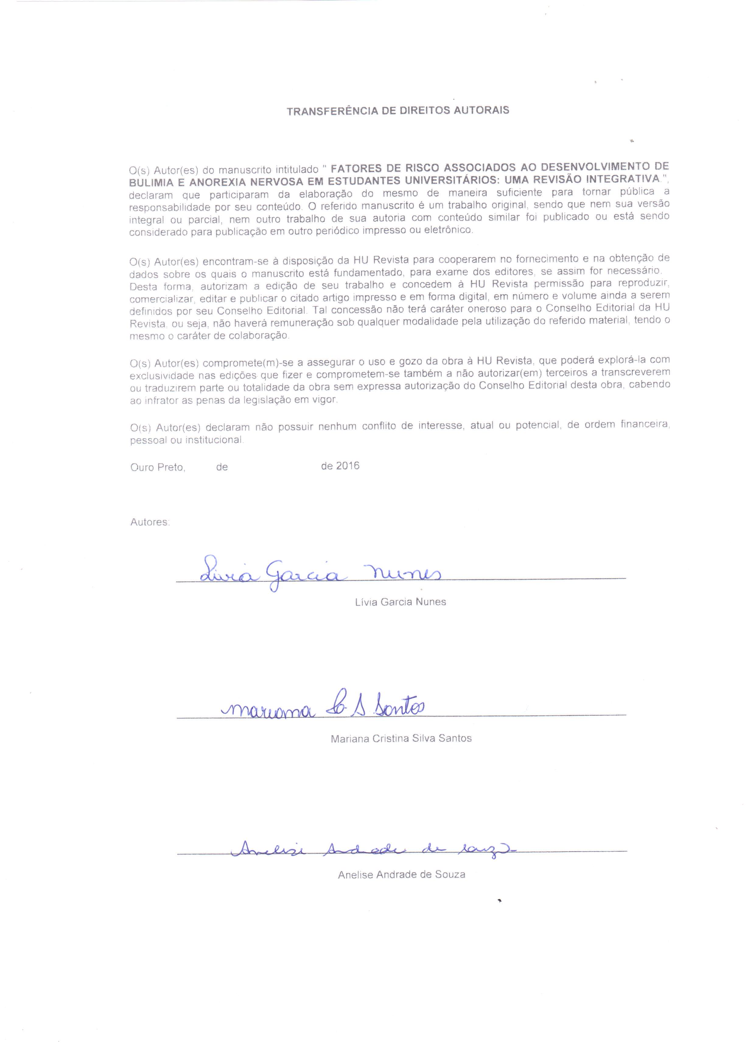 SOUZA, A.P.L.; PESSA, R.P. Tratamento dos transtornos alimentares: fatores associados ao abandono. J. bras. psiquiatr., Rio de Janeiro, v. 65, n. 1, p. 60-67, Mar. 2016.