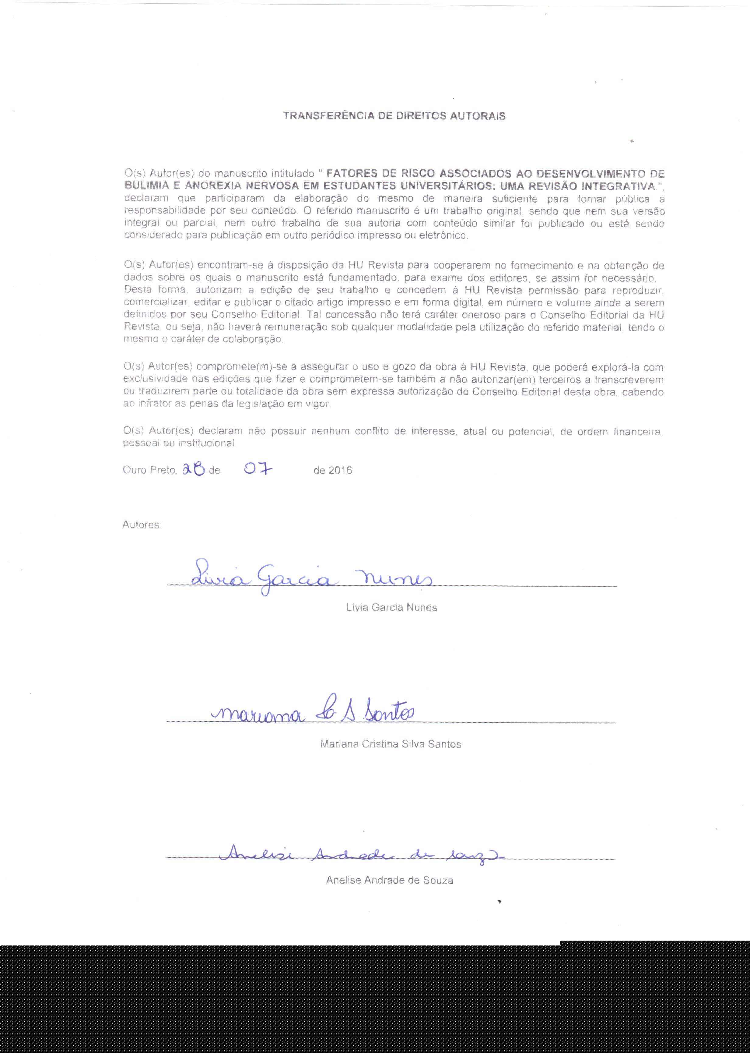 SILVA, J.Detal.Influência do estado nutricional no risco para transtornos alimentares em estudantes de nutrição. RevistaCiência& Saúde Coletiva, Rio de Janeiro, v. 17, n. 12, p. 3399-3406, 2012.