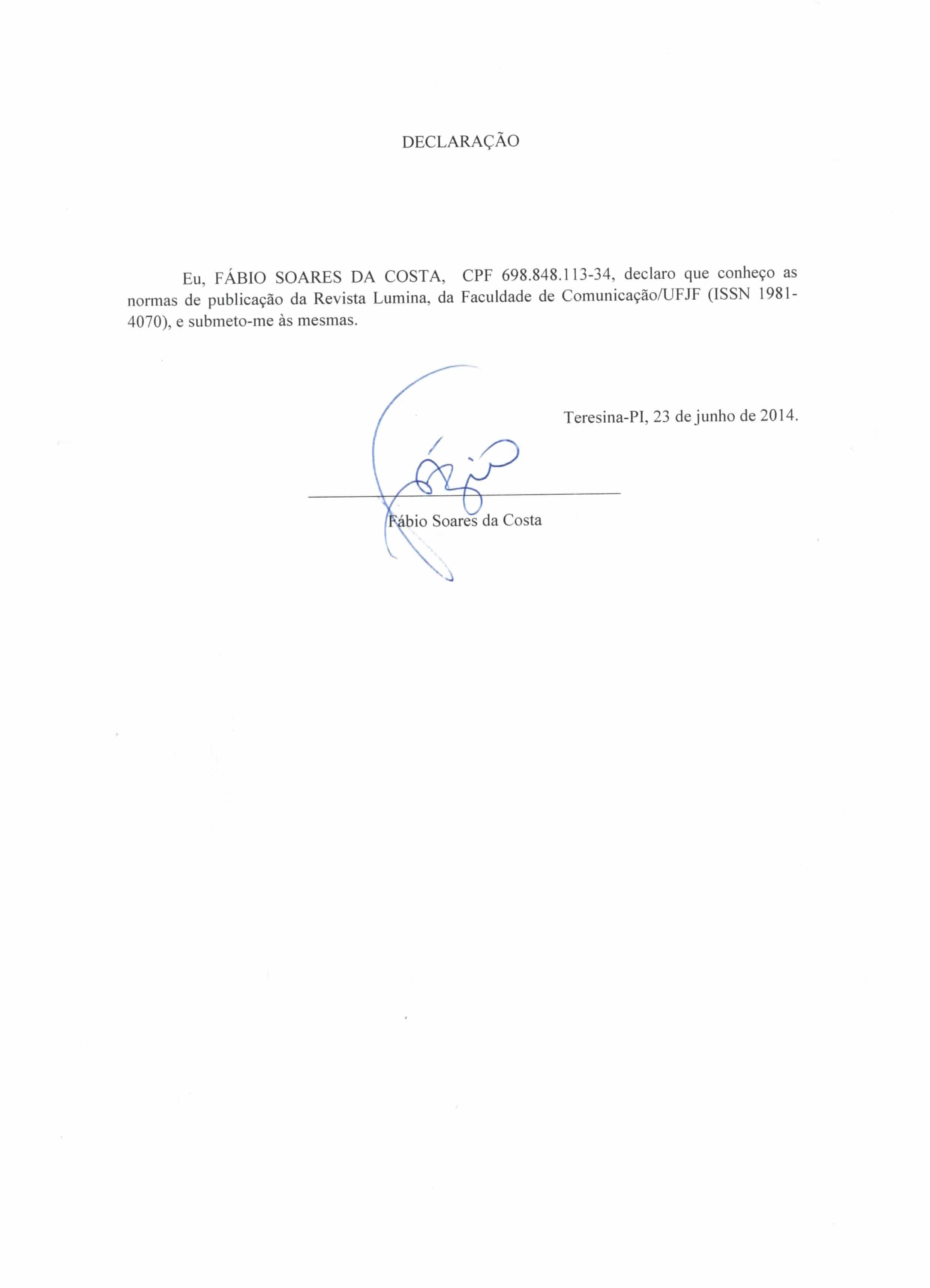 - Autores têm autorização para assumir contratos adicionais separadamente, para distribuição não-exclusiva da versão do trabalho publicada nesta revista (ex.: publicar em repositório institucional ou como capítulo de livro), com reconhecimento de autoria e publicação inicial nesta revista.