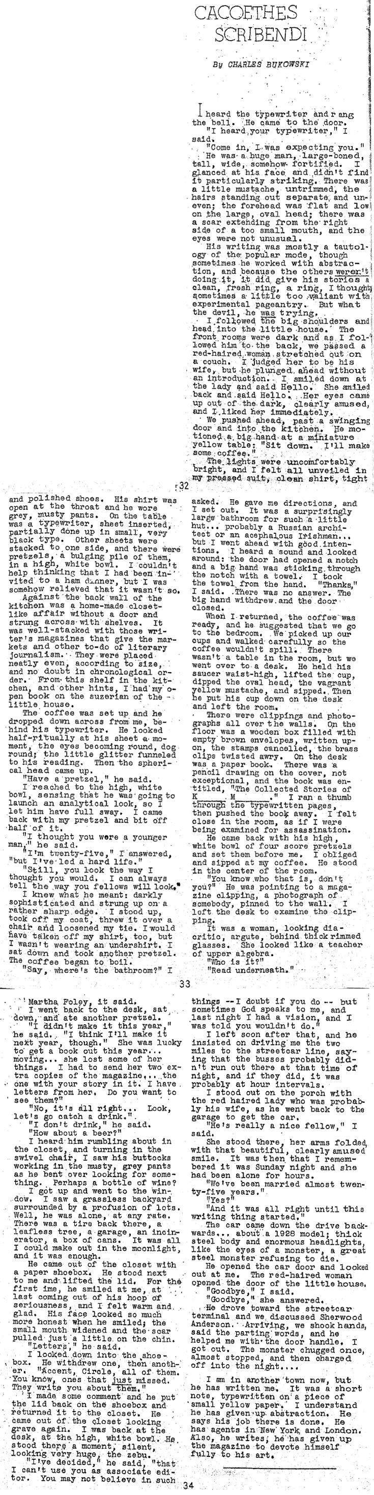 Tradução dos contos Cacoethes scribendi e A razão por trás da razão, de Charles Bukowski
