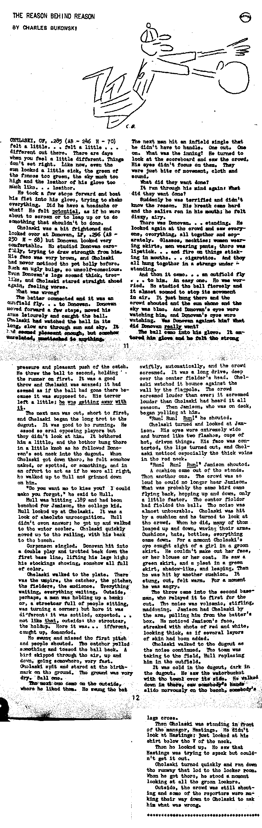 Charles Bukowski, Absence of the Hero, traduçãoResumo